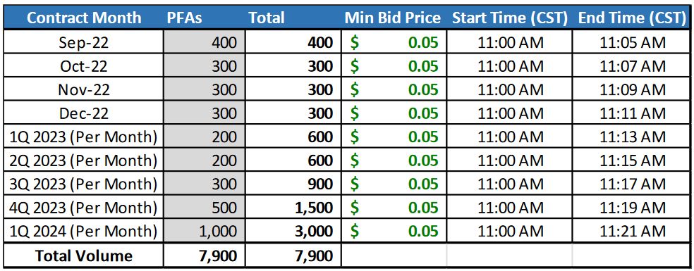 August 1, 2022 [Matrix Global] – Please note: The minimum bid prices LOOP will accept during its monthly Storage auction have been adjusted per the chart below. The new minimum bid prices go into effect starting with the August 2, 2022 auction.